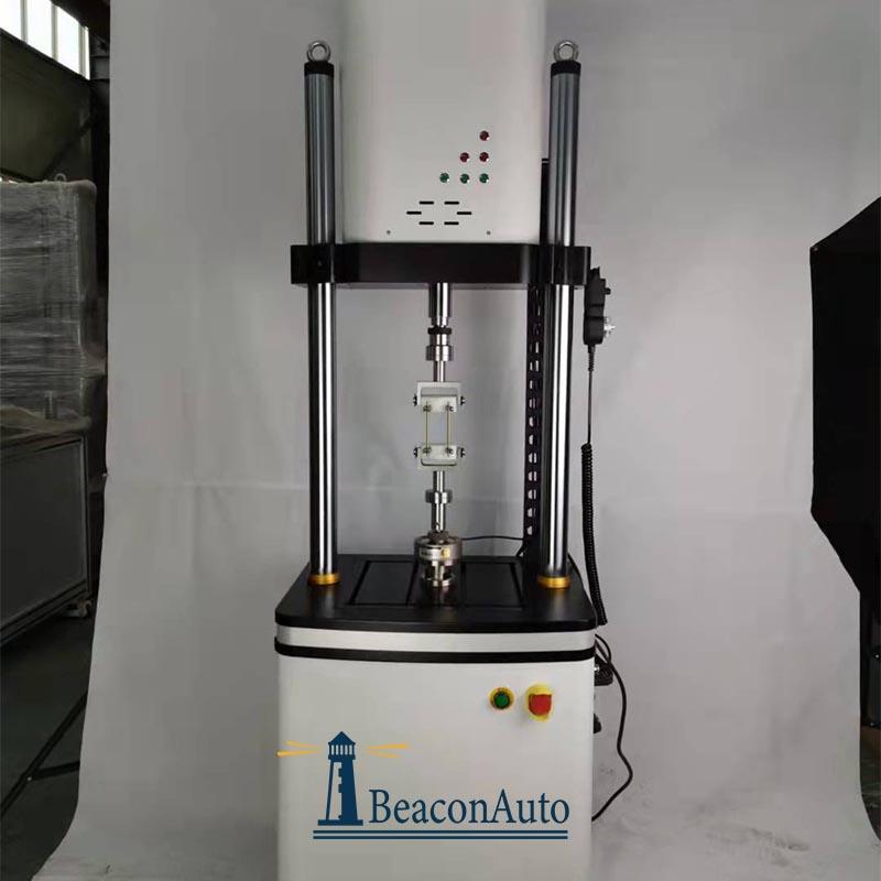鐵路扣件組裝疲勞試驗(yàn)機(jī) 扣件組裝疲勞性能試驗(yàn) 疲勞試驗(yàn)前,組裝扣件時(shí)不墊入軌下調(diào)高墊板,安裝A型彈條,使彈條中部前端下顎與軌距擋板剛好接觸后,再將螺母加擰四分之一圈。 1. 原 理 在所示的加載位置和方向?qū)︿撥壾夘^施加循環(huán)荷載。通過試驗(yàn)過程中扣件組裝扣壓力、鋼軌縱向阻力、扣件組裝靜剛度和鋼軌位置的變化,以及扣件部件疲勞后的狀態(tài)確定扣件的組裝疲勞性能。 1. 試驗(yàn)設(shè)備 1.1 鋼軌 一段長(zhǎng)度約0.5m或1m的短鋼軌(I型為50kg/m)(II、III型為60kg/m)鋼軌軌腰處截去后總高度h(如圖6),軌底不應(yīng)修整。鋼軌應(yīng)無(wú)剝離,表面無(wú)浮銹,軌底沒有由于重復(fù)試驗(yàn)被磨光。 1.1 加載設(shè)備 單個(gè)承軌面試驗(yàn)時(shí),能在3Hz~5Hz頻率下達(dá)到100kN的設(shè)備。當(dāng)要求同時(shí)對(duì)2個(gè)或4個(gè)承軌面加載時(shí),其加載能力應(yīng)相應(yīng)增大。 1.2 加載裝置 能按所示的加載位置,方向?qū)︿撥壾夘^施加循環(huán)荷載。該裝置允許鋼軌在荷載作用下自由轉(zhuǎn)動(dòng),平行鋼軌軸線的寬度為100mm±10mm,其與軌頭接觸部分的半徑大于軌頭接觸表面的圓弧半徑,保證所有荷載條件下,其與鋼軌保持線接觸。 1.3 樞軸 加載設(shè)備、加載裝置或加力架的自由樞軸,從樞軸到鋼軌的距離不應(yīng)小于0.4m。 鐵路扣件組裝疲勞試驗(yàn)機(jī)