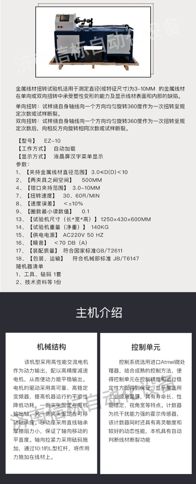 金屬線材扭轉試驗機適用于中華人民共和國標準GB/T 239.1-2012《金屬材料 線材 第一部分 單向扭轉試驗方法》、GB/T 239.2-2012《金屬材料 線材 第二部分 雙向扭轉試驗方法》,也適用于國際標準ISO 7800:2003《金屬線材單向扭轉試驗方法》和ISO 9649:1990《金屬線材雙向扭轉試驗方法》。