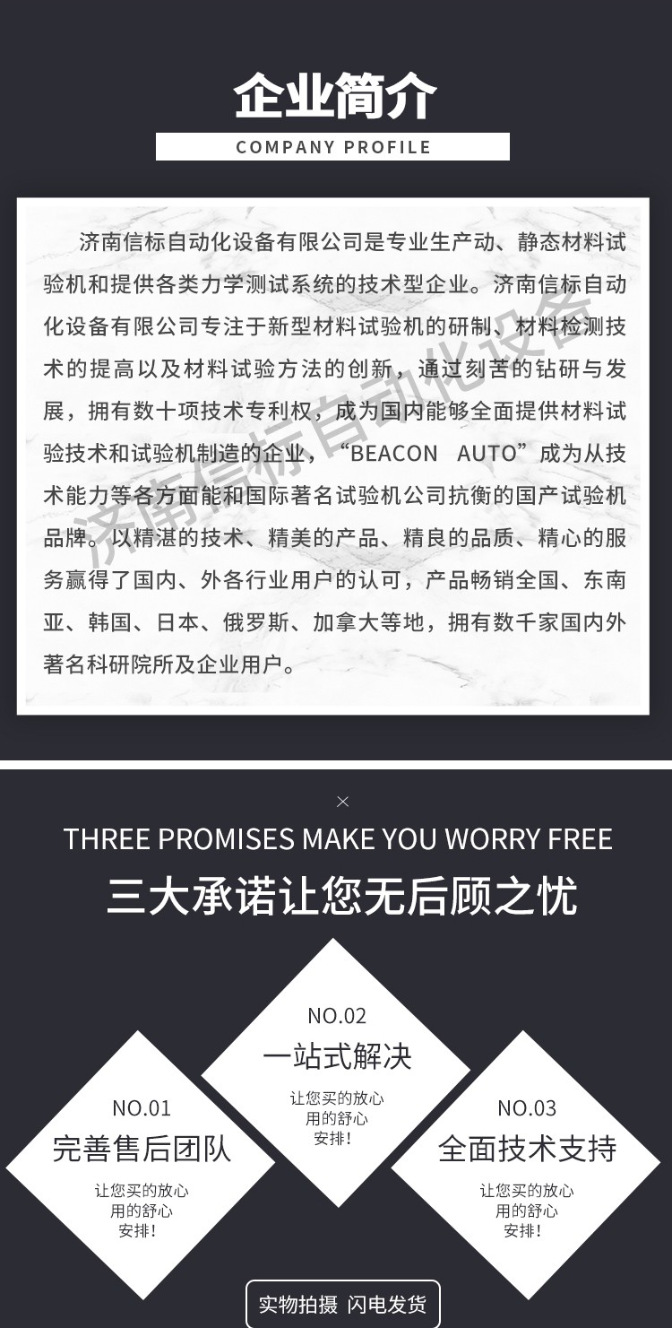 濟(jì)南信標(biāo)自動(dòng)化設(shè)備有限公司主要生產(chǎn):動(dòng)靜態(tài)萬(wàn)能疲勞試驗(yàn)機(jī),接骨板彎曲試驗(yàn)機(jī),縫合線拉伸疲勞試驗(yàn)機(jī),髖膝關(guān)節(jié)磨損試驗(yàn)機(jī),電子萬(wàn)能試驗(yàn)機(jī)、液壓萬(wàn)能試驗(yàn)機(jī)、巖石三軸、四軸,電液拉力試驗(yàn)機(jī),材料試驗(yàn)機(jī),高低溫蠕變,高低頻疲勞,拉伸、扭轉(zhuǎn)、杯突等二十多個(gè)系列兩千多個(gè)的品種。